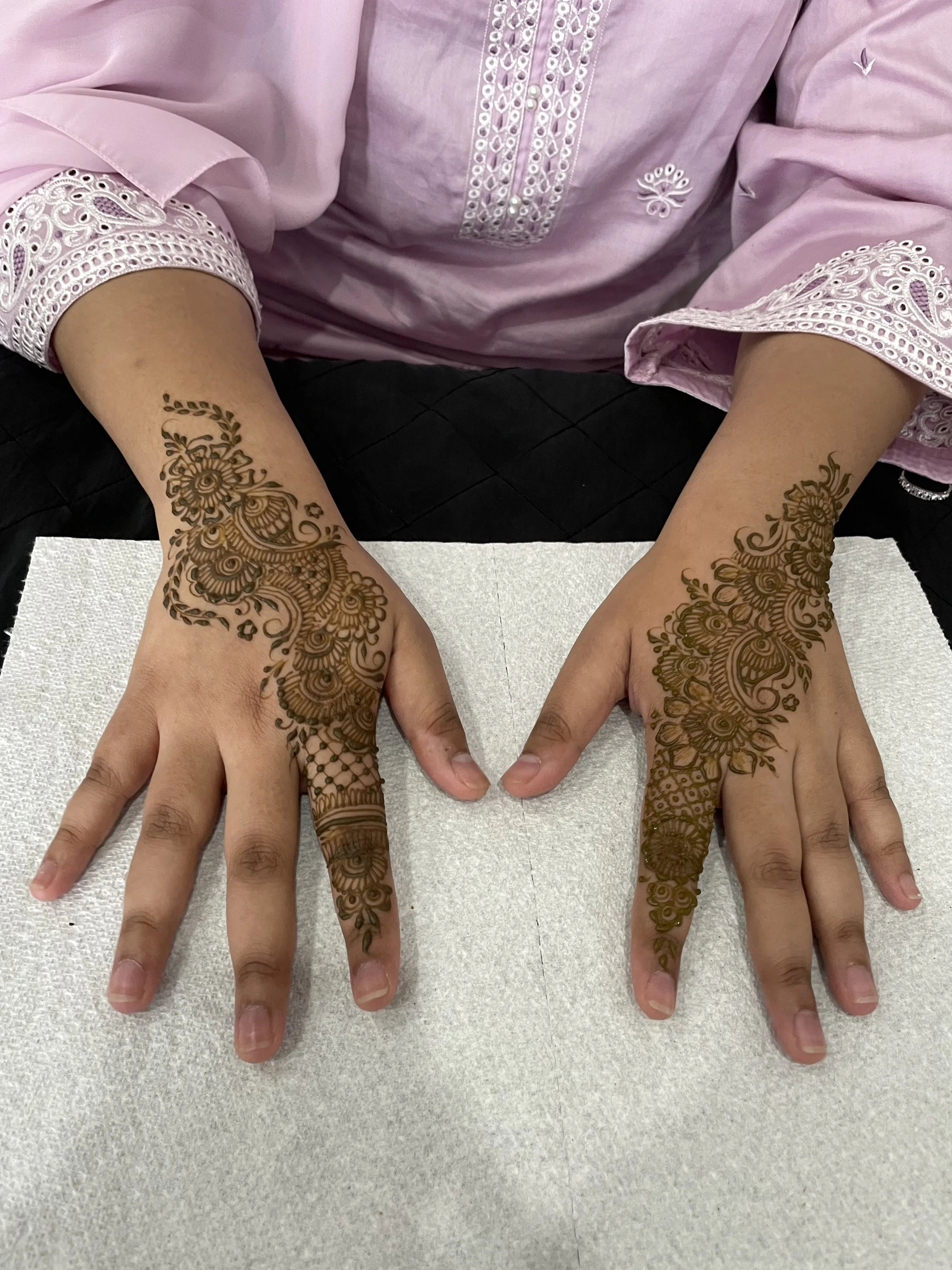 Ideal for groups of six or more, this service is $80 per hour with a two-hour minimum. Quick, freestyle bael or mandala designs are recommended for larger gatherings, with approximately 12–14 designs completed per hour.